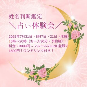 2025年7月28日 / 最終更新日 : 2025年7月28日 cafefleur 占い体験会 Facebook コメントを残す コメントをキャンセルメールアドレスが公開されることはありません。 ※ が付いている欄は必須項目ですコメント ※ 名前 ※ メール ※ サイト 次回のコメントで使用するためブラウザーに自分の名前、メールアドレス、サイトを保存する。 Δ